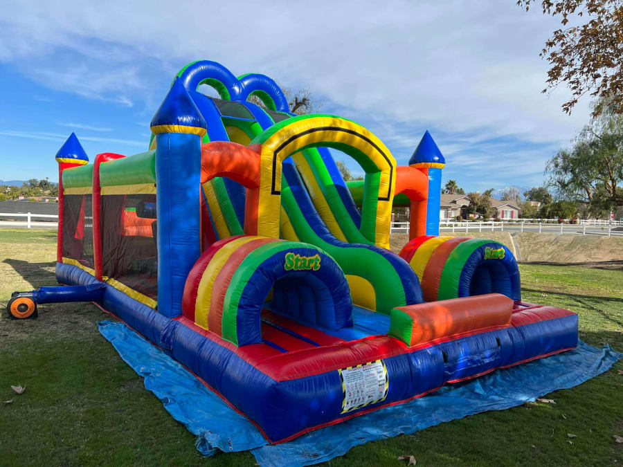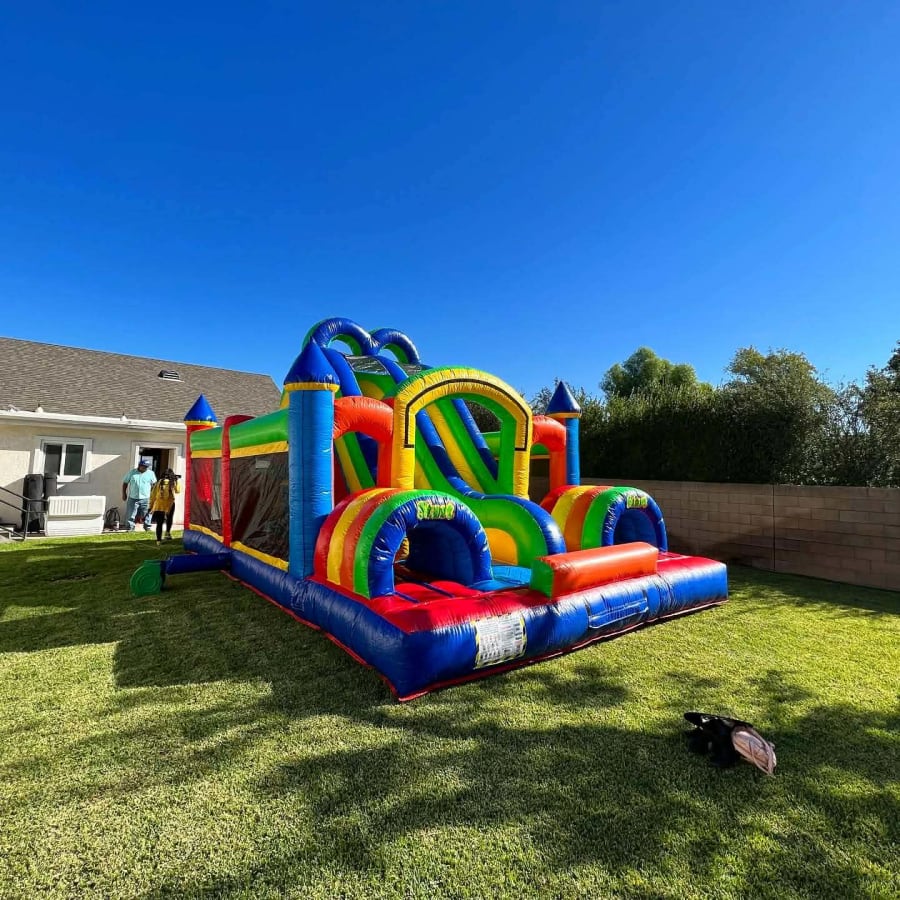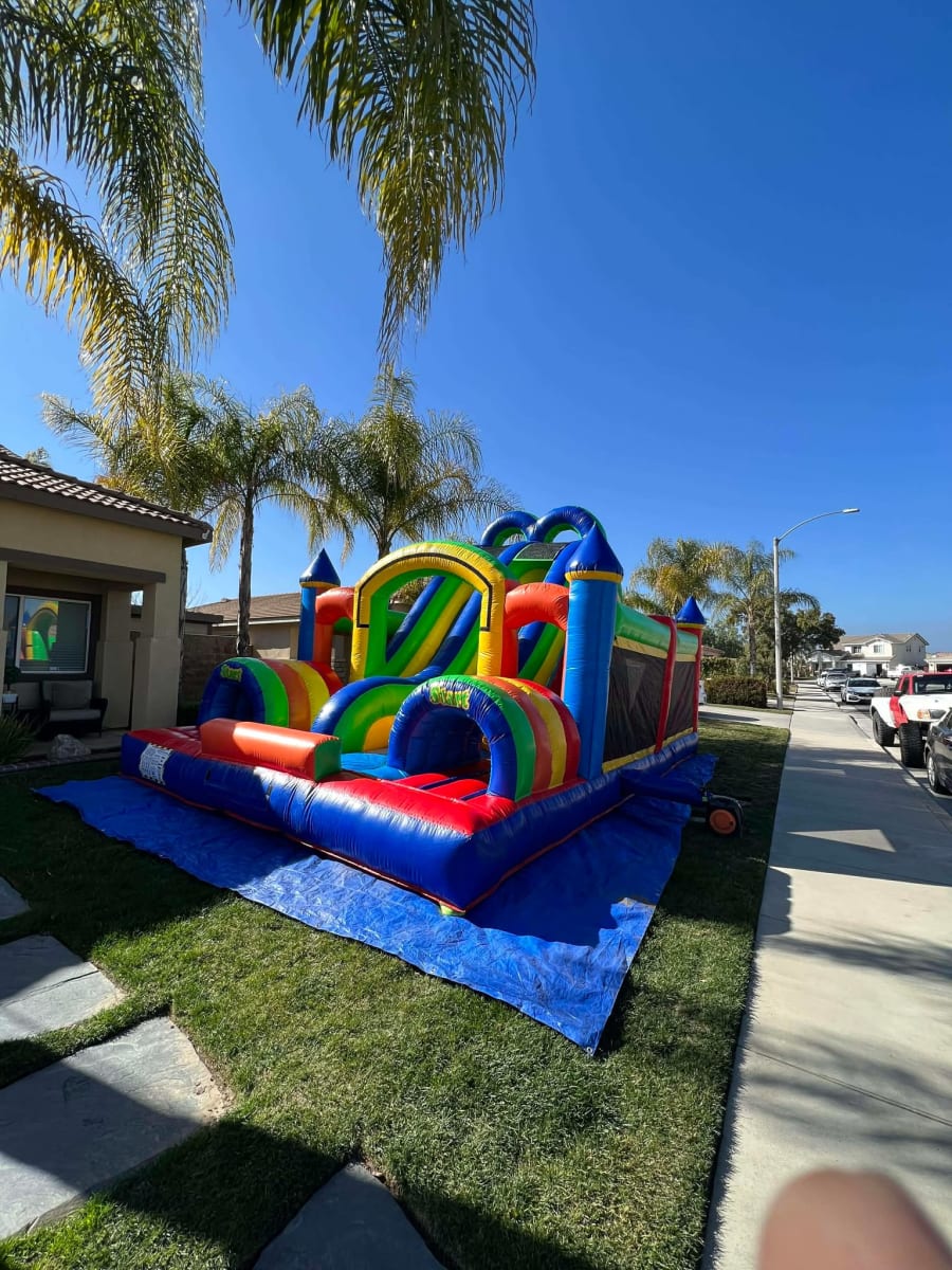 Customers searching for double obstacle course rental near me, jumper rentals Moreno Valley, or obstacle course party rentals Riverside County trust Paludis Jumpers & Party Rentals for safe, high-quality equipment and reliable service.